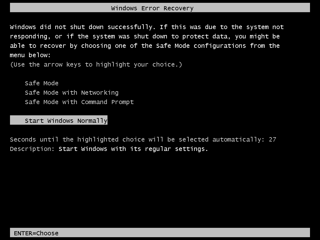 A noter qu’au premier démarrage des nouveaux systèmes, Windows va vous prévenir qu’il n’a pas pu démarrer correctement, ce qui est normal.